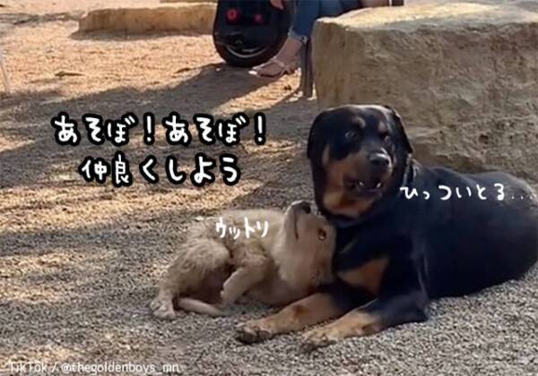 カッコイイ 公園で一番大きい犬と仲良しになりたいゴールデンレトリバーの子犬が猛烈アタック 21年9月21日 エキサイトニュース
